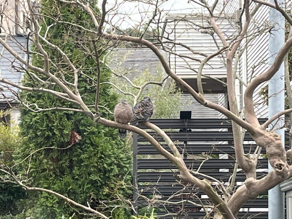 今日の横浜は時々、小雨。庭のさるすべりの枝にキジバトのつがいが。午前中、子供たちと孫で部屋や浴室の掃除をしてもらいました。お陰でサッパリしました。暮れの大掃除です。