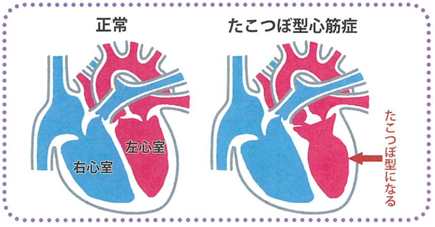 たこつぼ心筋症は別名「ブロークン・ハート症候群(broken heart syndrome)」ともいう。感情的なショックや身体的ストレスなどの強烈なストレスをきっかけに、一時的に心臓の一部がうまく動かなくなる心筋の病気だ。心臓の左心室の先端の心尖部が風船みたいに膨らんで、根元の方の心基部はギュッと縮んだままになる。その形が、日本のタコつぼ(蛸壺)にそっくりだから、そう呼ばれている。原因はストレスからアドレナリンなどが大量に分泌されて、心臓に一時的なダメージを与えると考えられている。