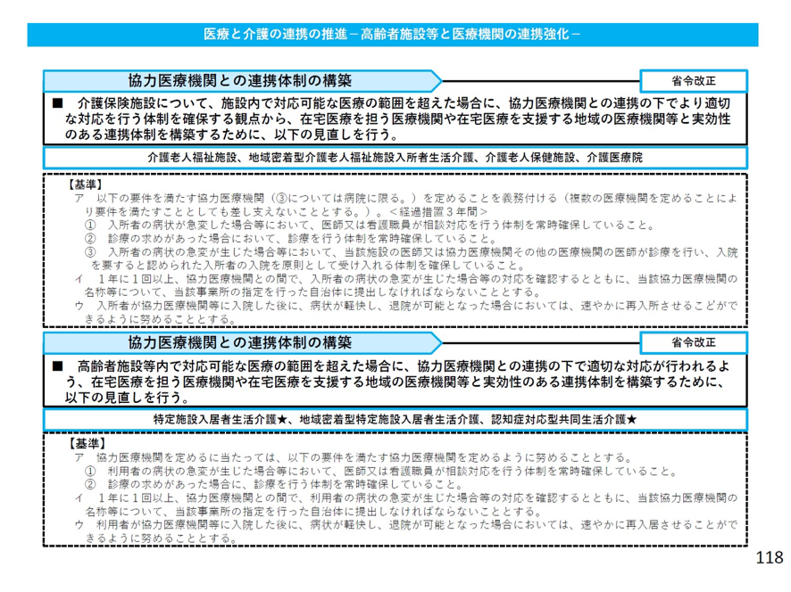 ここからは基本方針の「在宅療養患者や介護保険施設等入所者の後方支援(緊急入院等)を担う医療機関の評価」、すなわち在宅・介護施設と医療機関の連携について見ていこう。
