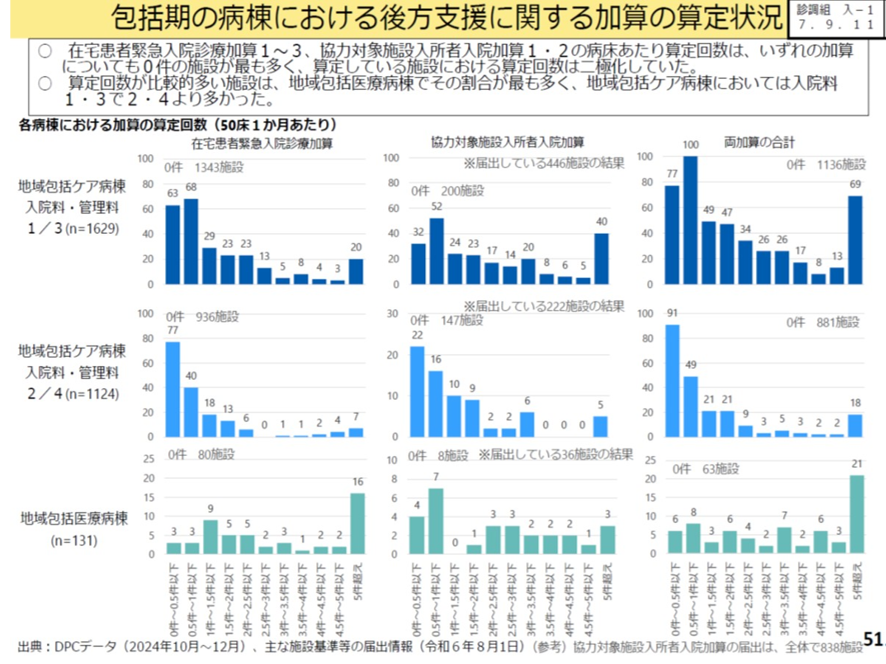 以上のように、①在宅患者緊急入院診療加算と②協力対象施設入所者入院加算の二つの加算の件数が、在宅・介護施設と医療機関の連携を評価する代表的な加算といえる。