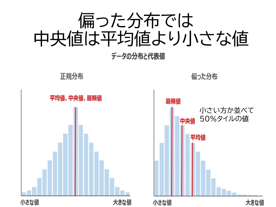 入院期間Ⅱは疾病分類別の平均在院日数で、入院期間Ⅱまで在院した場合に平均的な1入院当たりの医療資源投入量を回収できるように設定されている。このためクリティカルパスを院内で作成するときの疾病分類別の入院期間を入院期間Ⅱまでに設定することが多い。ところが、DPCワーキングで分析を行ったところ、一部に非常に入院期間の長い症例があり、これが全体の平均在院日数を伸ばしていることが判った。また疾病分類別の在院日数の中央値をみると、多くの疾病分類において中央値より平均在院日数のほうが長い入院日数であることが判る。図表15に中央値と平均値の関係を模式的に示した。つまり多くの診断群分類では在院日数は正規分布せず、短い方に偏っている。このためクリティカルパスの入院日数も中央値を用いたほうが合理的と言える。