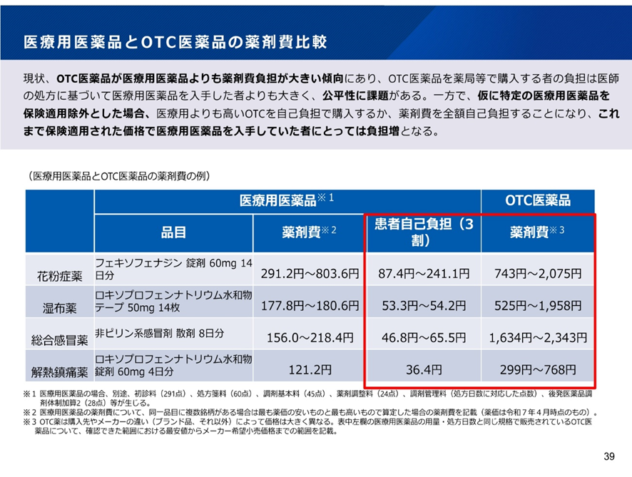 そして2025年10月20日の自民党、日本維新の会の連立政権の樹立に至って、OTC類似薬を含む薬剤の自己負担の見直しが連立政権の社会保障制度改革のトップ項目に位置づけられた。